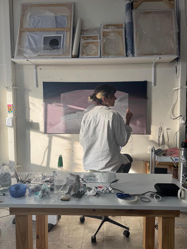 For some time now, I have been asking myself what the word creativity means to me. As a visual artist, my work involves translating ideas into images, and because of that, I find it essential to take care of the spaces that nurture and make the emergence of these ideas possible. At this moment, creativity means allowing myself those spaces through meditation—spaces of inner and outer contemplation, the possibility of inhabiting emptiness and becoming an observer. In a way, it is about transforming all of this into images. Caring for that space, sustaining it, is creativity for me. I also think of it as an analogy to the act of painting itself: entering another state, another frequency.