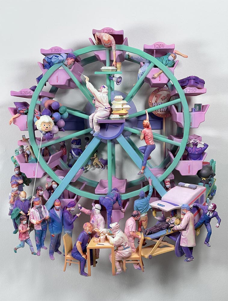 Right: Wonder Wheel 2022 60x68x17 cm Acrylic on resin, wood and metal