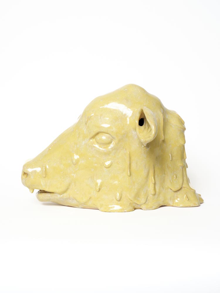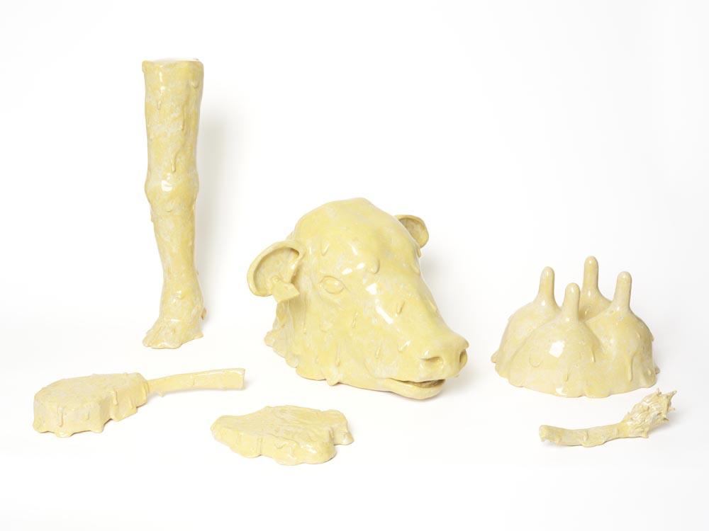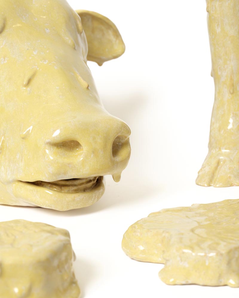 Butchered Butter Cow (Salted). 2025. Ceramics, glaze. Dimensions vary. Photo by Todd Midler.