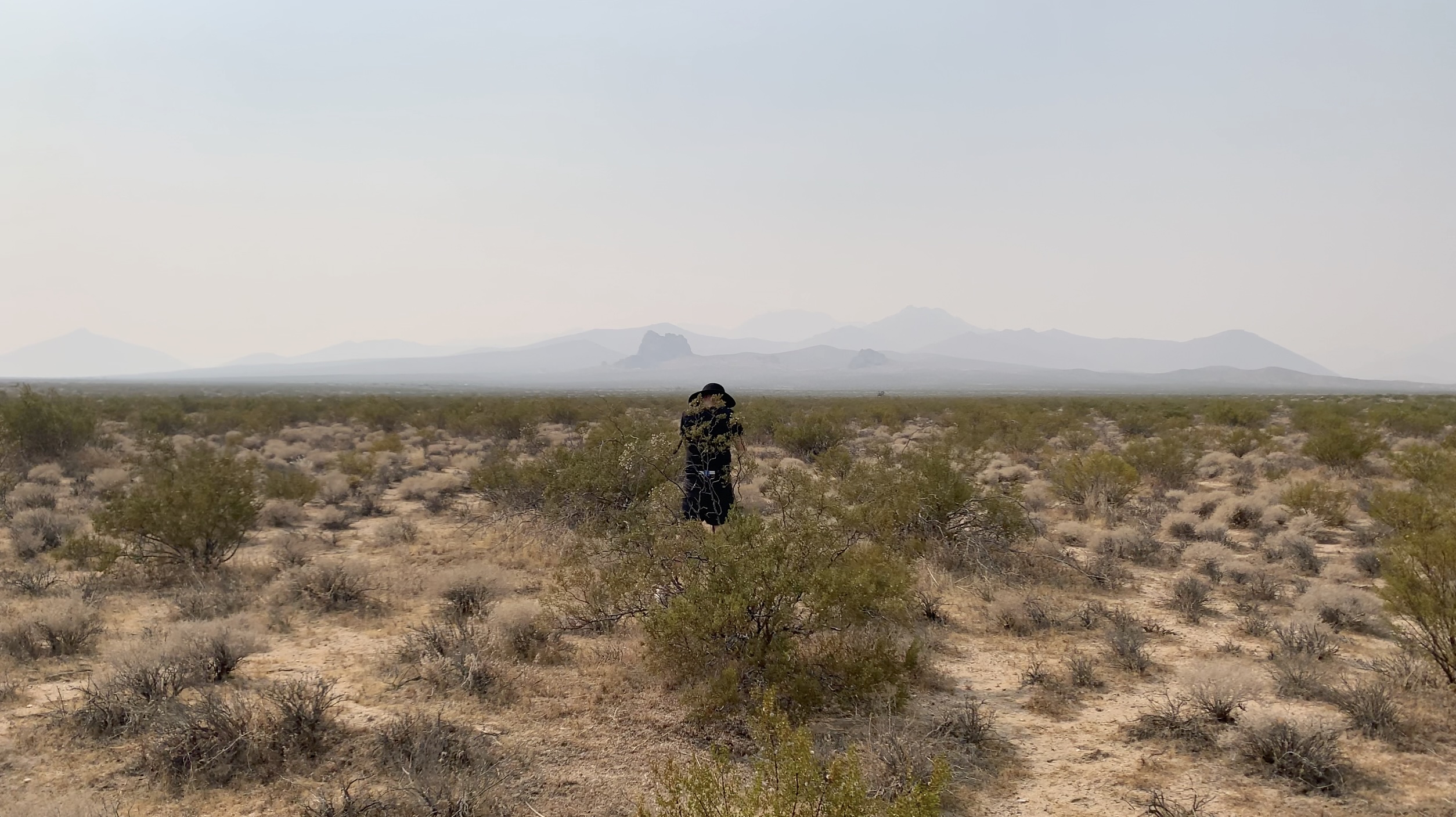 Tracy L Chandler photographing in the California desert. (Photographs by Andre Stringer.)
